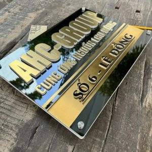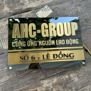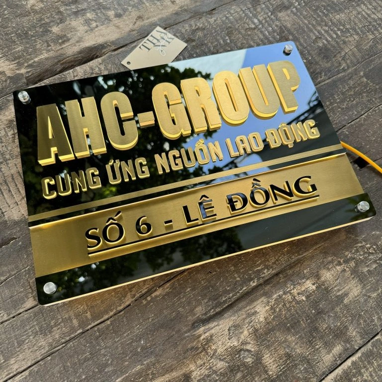 * Màu sắc: Nền màu Gương đen + Xước vàng. Chữ nổi màu mica đen, đế cháo sáng đèn