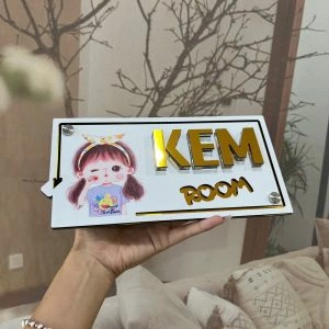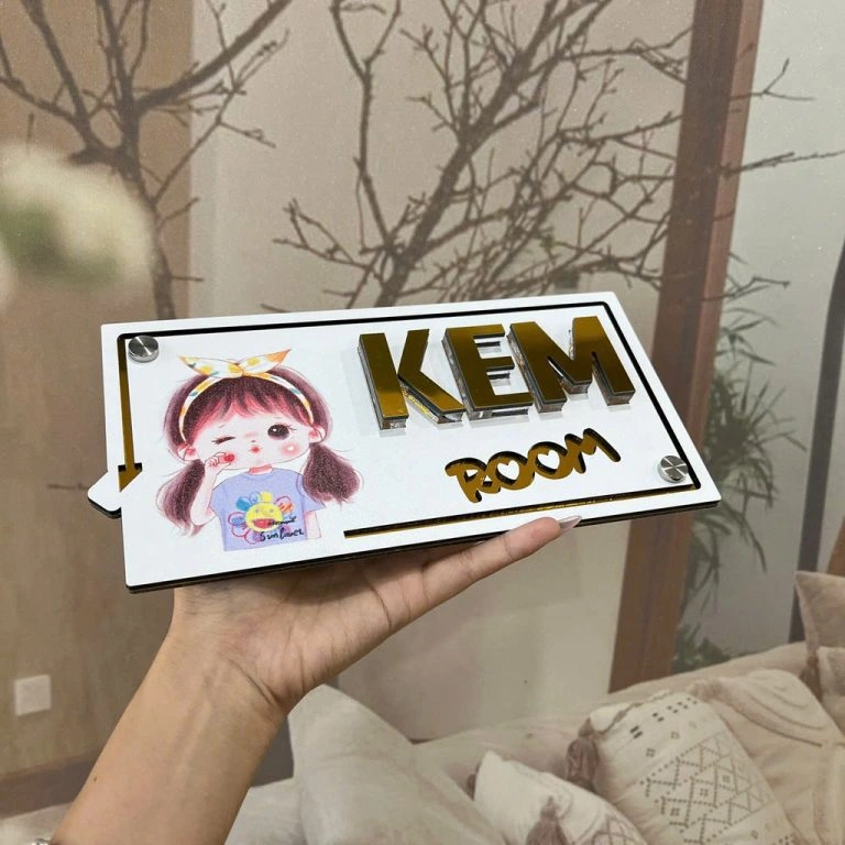 * Màu sắc: Nền trắng sần, chữ âm bản gương vàng